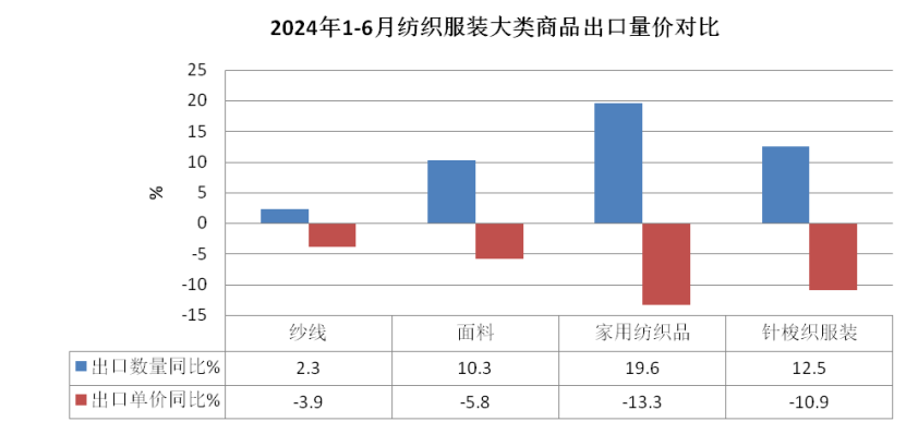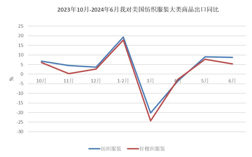 (一)1-6月对美出口额增长5.1%,针梭织服装出口量增长16.5%。