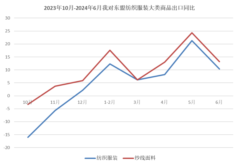 二季度东盟经济形势呈现出稳健复苏的态势,越南、泰国等区内前沿经济体表现亮眼。1-6月,我对东盟出口纺织服装271.2亿美元,同比增长9.5%;对越南出口纺织服装92.3亿美元,同比增长11.4%。分产品看,1-6月我对东盟出口纱线面料138.6亿美元,同比增长11.6%;出口服装79.1亿美元,同比增长5.4%。6月,我对东盟出口纺织服装46.6亿美元,同比增长10.4%。分国别看,我对越南、马来西亚、柬埔寨、印度尼西亚、新加坡、菲律宾、泰国和老挝出口同比分别增长7%、2.2%、32.8%、4.2%、17.4%、15.4%、18.9%和2.3%。我对东盟出口纱线面料22.9亿美元,增长13.2%;出口服装14.8亿美元,增长5.4%。