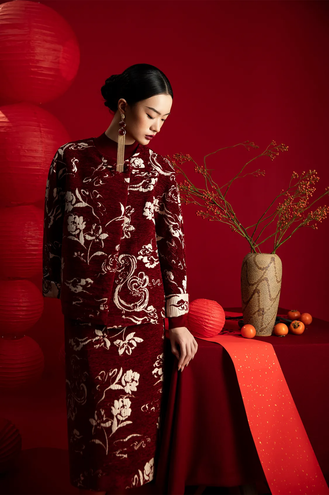 江南布衣在蛇年新春营销中,同样注重品类的丰富性。新年系列,从中国古代磁器纹样中获取灵感,用剪纸的方式提取东方花和蛇年纹样。在传统经典轮廓的基础上,大胆运用现代语言进行重新诠释,以简洁流畅的线条勾勒出纹样的灵动之姿。新年系列还采用改良的盘扣设计结合精致的金属件,融传统美学与现代剪裁于一体。版型设计追求宽松舒适,兼顾自由活动与优雅,是都市松弛之选。